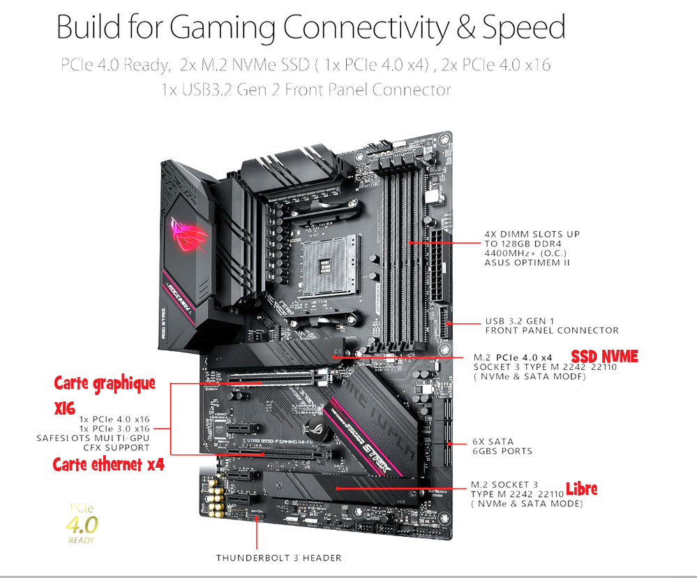 Le port nvme pcie*4 je ne peux pas connecter la carte ethernet car pas la place a cause de la cg trop volumineuse.