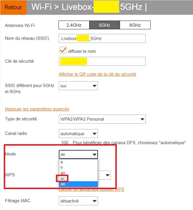 pour le 5ghz choisis AC et pour le 2.4ghz choisis BGN![]()