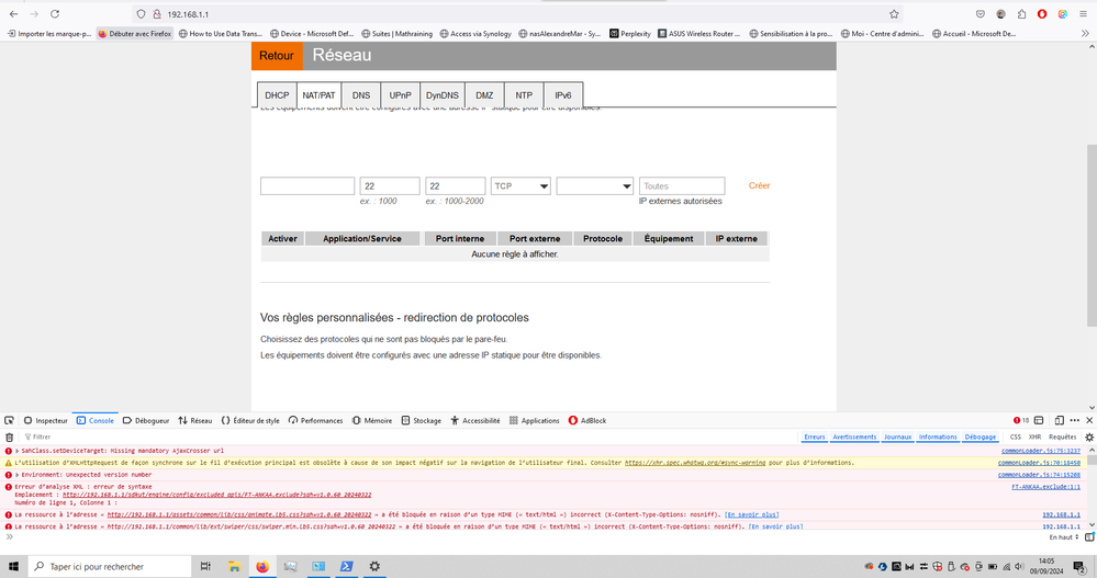 ,pourriez vous m'aider, je ne peux toucher quoi que ce soit pour une redirection de ports , et je en sais pas pourquoi à part qu'il ya une erreur dans la console ?je ne peux pas avoir la liste de sappareils connectés