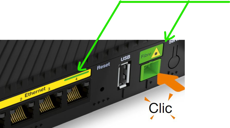 La prise 4 porte les couleurs vert et jaune, elle est donc destinée à Fibre (avec ONT) ou Ethernet si connexion fibre sur ONT interne de la box.