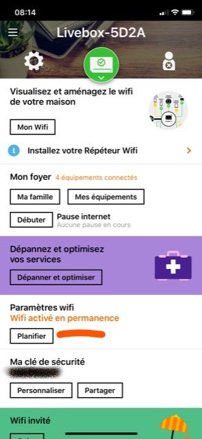 Suite a une modification des plages horaire wifi je n'arrive plus a revenir avec le wifi activer en permanence , il se coupe tous les soirs a minuit alors que j'ai déjà remis en permanence a partir de mon application smartphone et de mon pc sur ma livebox , j'ai déjà éteint et rallumer mais il continue de se couper a minuit