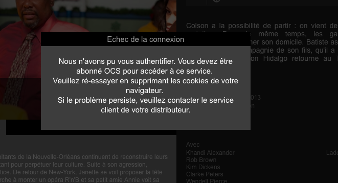 En déplacement depuis hier, j'ai voulu regarder une série sur OCS Go, et au moment de m'identifier, message d'erreur qui me dit qu'il n'a pas réussi à m'identifier :