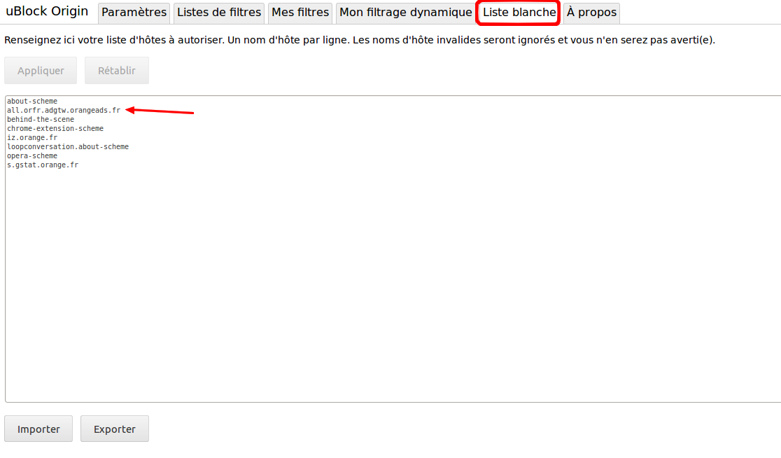 Et sous l'onglet Liste Blanche : ajouter cette ligne