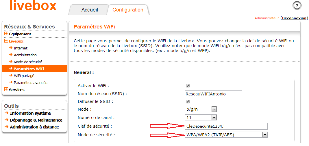 ETAPE 1 : Configuration côté Livebox ("Paramètres WIFI")