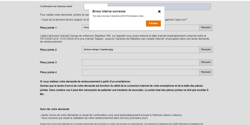J'ai achété 3 repeteurs wifi, quand je remplis le formulaire de remboursement j'obtient un message d'erreur et ceci depuis une semaine,
