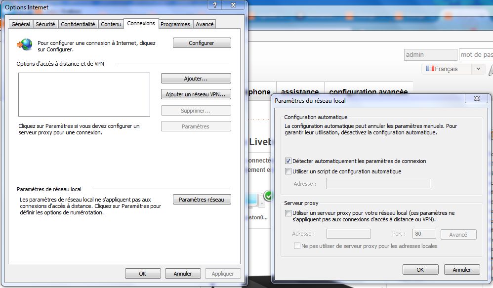 Décocher la case du serveur Proxy