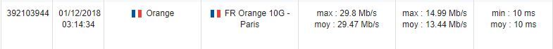 Donc depuis le 10/09/2018, date à laquelle je refais des tests régulièrement, j'ai constaté les débits suivant :