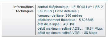 débit maximum estimé ADSL : 19.84 Mbps