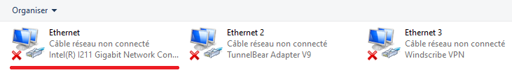 Sauf que, ma carte réseau, malgré sa petite croix rouge présente pour indiquer le non-accès à internet, à ces 2 petits écrans d'ordi dans son logo d'allumés.
