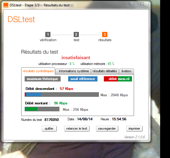 Un technicien est venu parce qu'il y avait un problème sur la ligne. Il a changé la carte DSLAM, et j'ai récupéré un peu de débit.