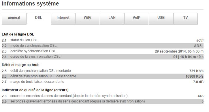Une fois identifié aller dans l'onglet assistance puis information système puis DSL