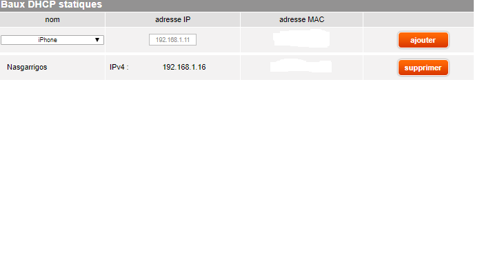 Voilà, j'ai volontairement masqué mes adresses mac car elles s'incrivent automatiquement.
