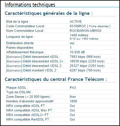 Ma ligne fait 1460m avec un affaiblissement de 15.04db. En ADSL j'avais 15,5Mb en DL et 1Mb en UL.