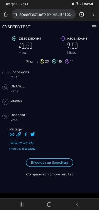 Voici le speedtest depuis mon mobile