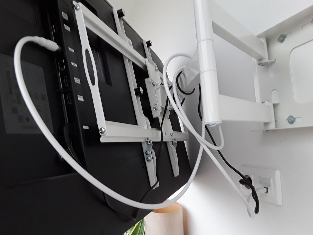 La télé est distribuée depuis le boîtier de communication en cable ethernet,les postes sont connectés avec des câbles balun(rj45 côté prise et entrée coaxiale au poste),entre l'antenne et le boîtier,un cable coaxial arrivée sur un ampli intégré au boîtier lequel est alimenté au même endroit que la box dans le boîtier,laquelle se trouve aussi dans le boîtier,devant l'ampli télé et les connexions, une séparation plastique les séparent