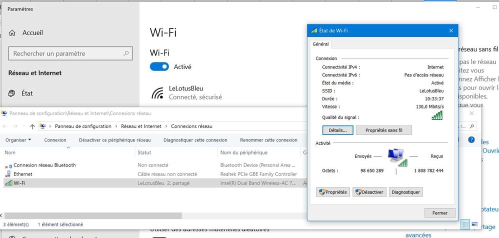 Ajoute une capture d'écran lisible de l'état de ta carte réseau avec la fenêtre des détails (bouton détails...).