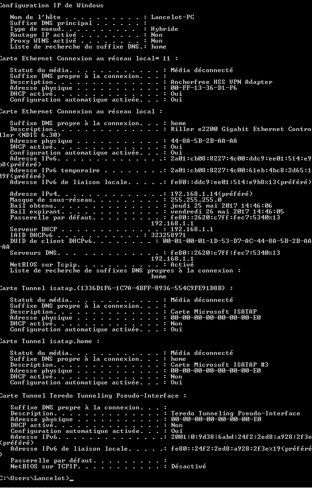 P.S: j'avais oublié de poster le ipconfig /all via l'invite de commande