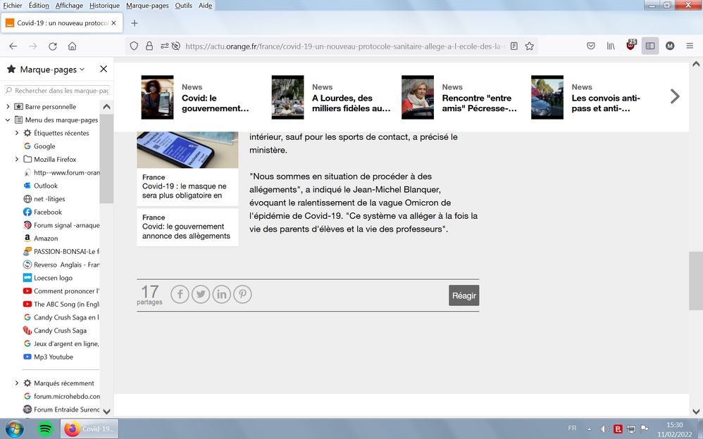 mais bizarrement j'ai accès pour réagir aux autres rubriques de la page d'accueil pour réagir avec mon pseudo sauf la rubrique actualités (je l'ai constaté un matin en allumant le pc et j'ai bien fouillé pour en trouver la raison, mais sans succès)