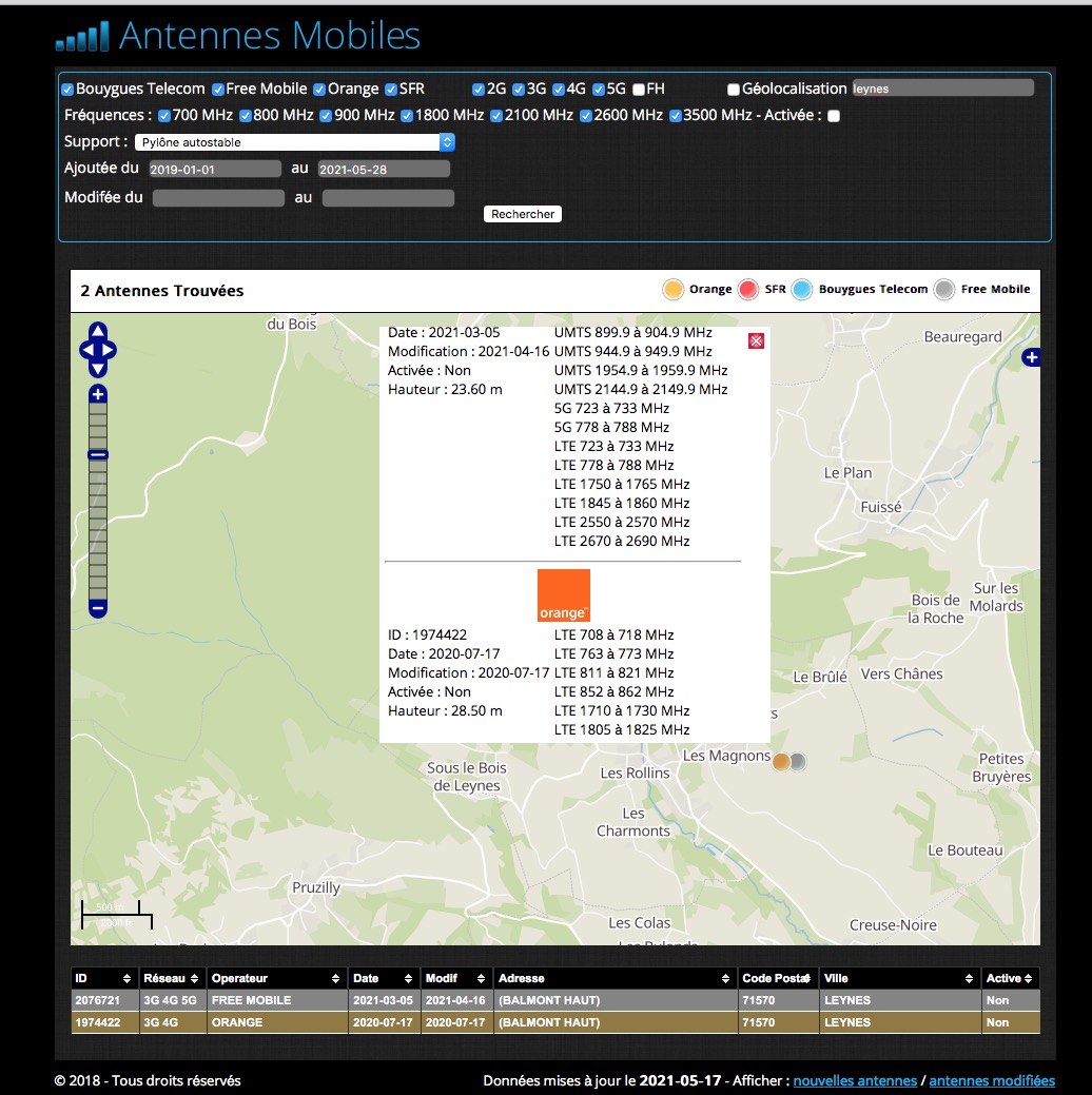 Un pylone austostable pouvant recevoir Orange / Free a été installé et électrifié depuis quelques mois (au moins 2) dans notre zone (ci-joint capture d'écran), particulièrement mal desservie depuis des années (crise de nerf quotidienne pour passer et recevoir un appel mobile, plusieurs minutes d'attente pour simplement recevoir un début de signal).