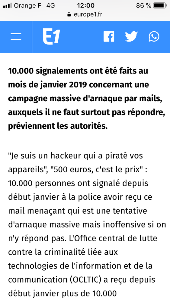 Suite à mon dépot de plainte, la gendarmerie m'indique ceci :