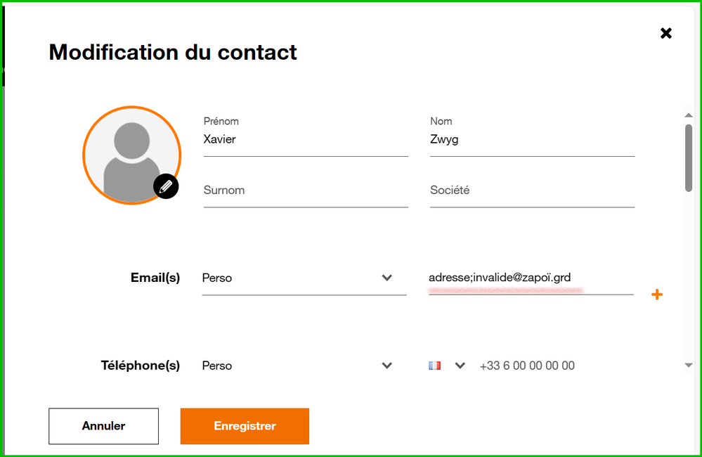 Comment une boite mail Orange peut-elle avoir une adresse invalide ?