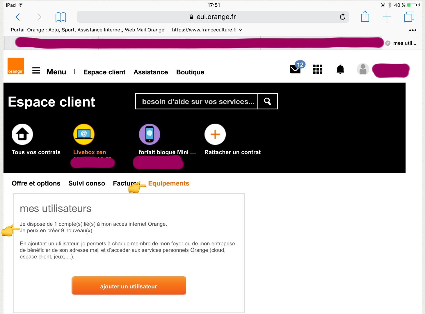 J'ai tout de suite réagi en me connectant à mon compte Orange.