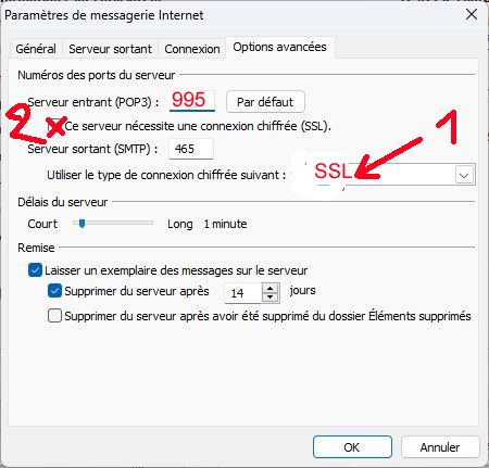 Et tant qu'à faire: point 2 : port 995 avec POP et chiffrement SSL aussi.!
