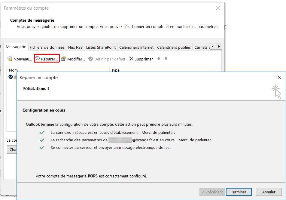 Depuis que j'ai lancé hier la procédure "réparer" sous Outlook, je peux à nouveau envoyer des mails (plusieurs envois ce matin).