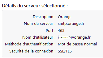 - Nom d'utilisateur = adresse mail Orange complète