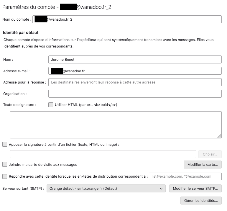 Depuis mon logiciel thunderbird ne parvient plus à envoyer des mails par mon adresse ...@wanadoo.fr