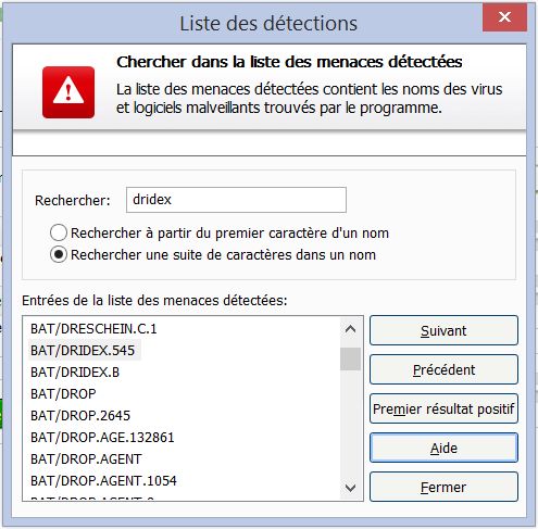 Ayant le même antivirus que PhilDur (Avira Free 2015), j'ai la même liste de menaces détectées dont Dridex fait partie :