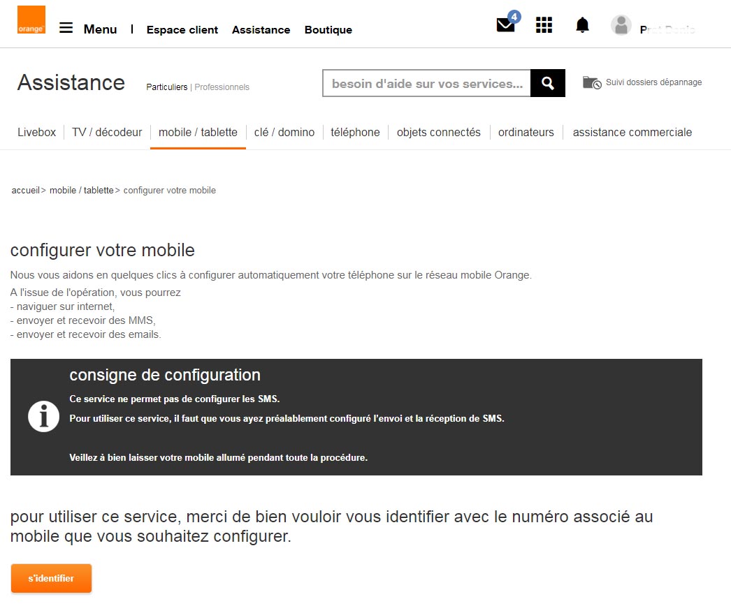 ne pouvant lire les MMS (data mobile activé) je décide d'utilser le service configuration automatique orange .. sauf